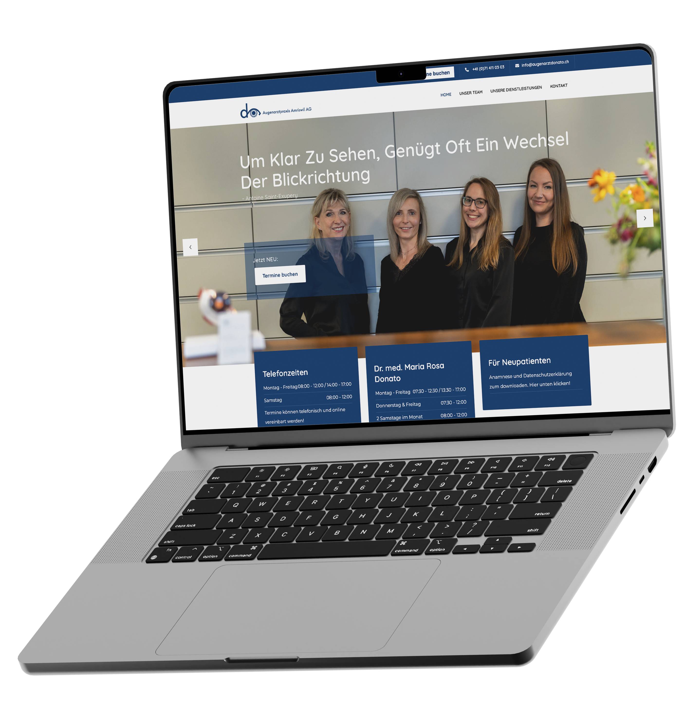 Moderner Webauftritt für Augenarzt Donato, mit Online-Patientenanfrage und Teamvorstellung für eine einfache Terminplanung.