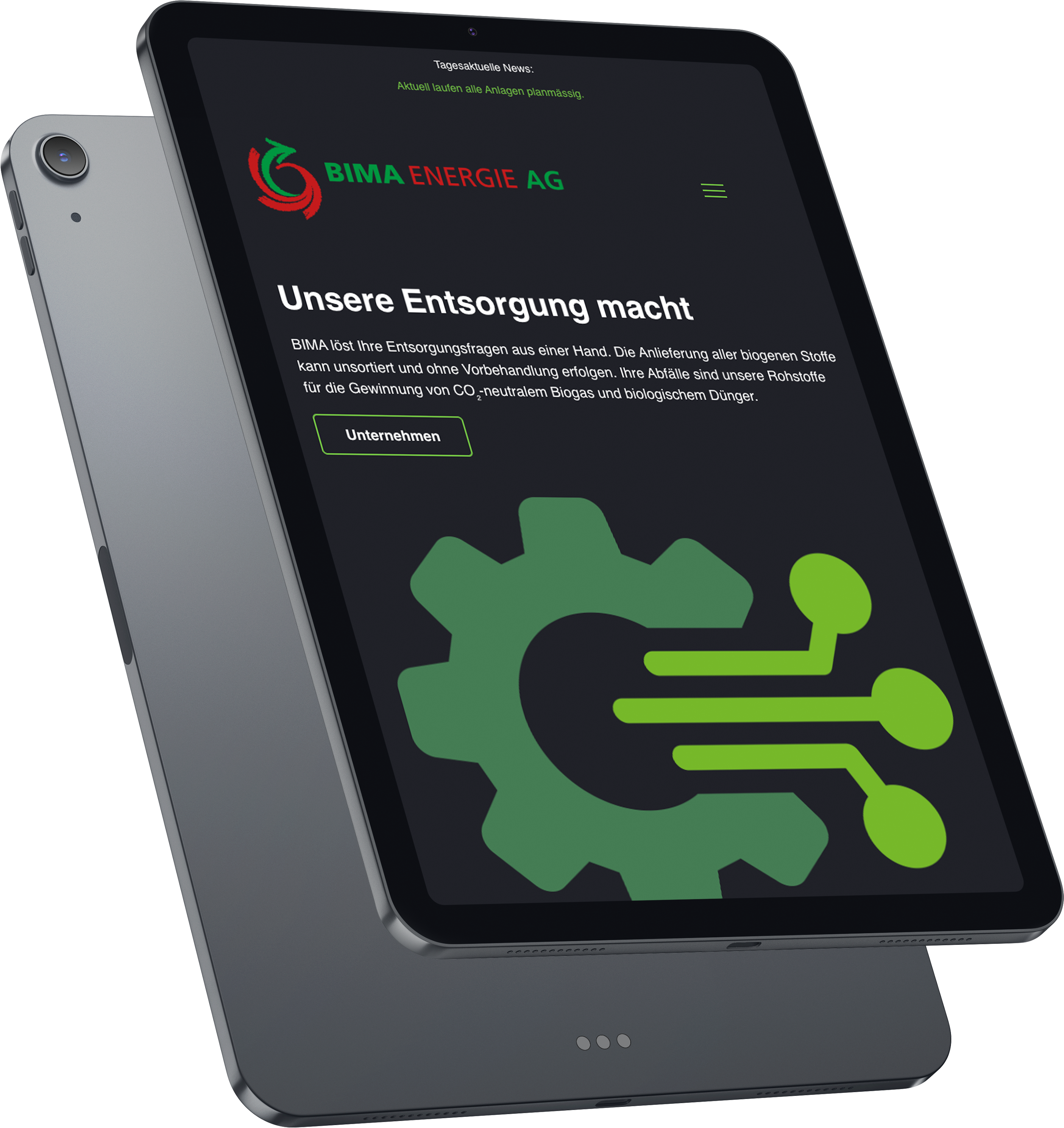 WordPress-Webauftritt für die BIMA Energie AG, mit übersichtlicher Produktdarstellung für Lieferanten und Abnehmer.
