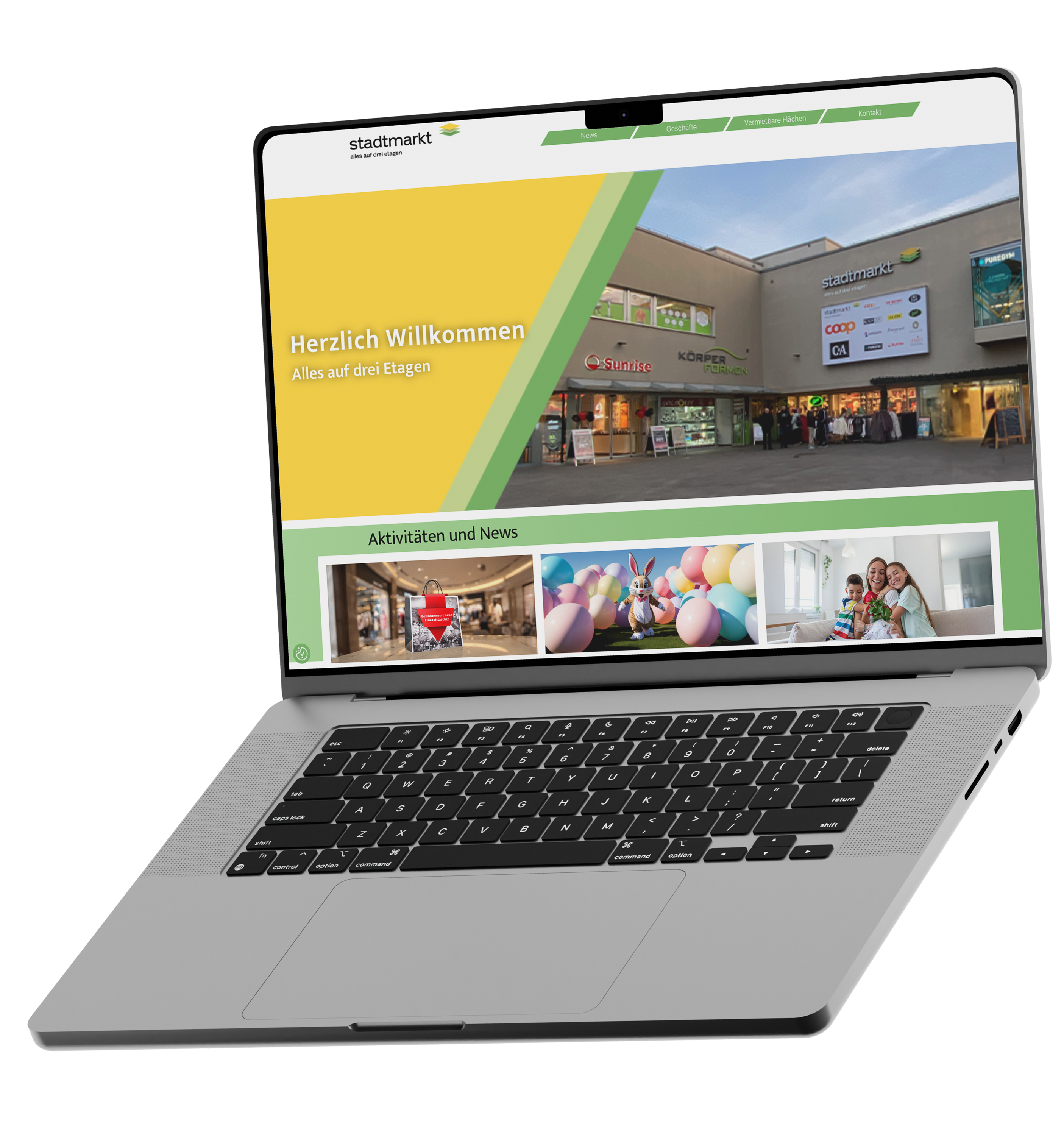 Webauftritt für den Stadtmarkt Wil, mit News, Händlerübersicht, Google Maps und einer separaten Seite für vermietbare Flächen.