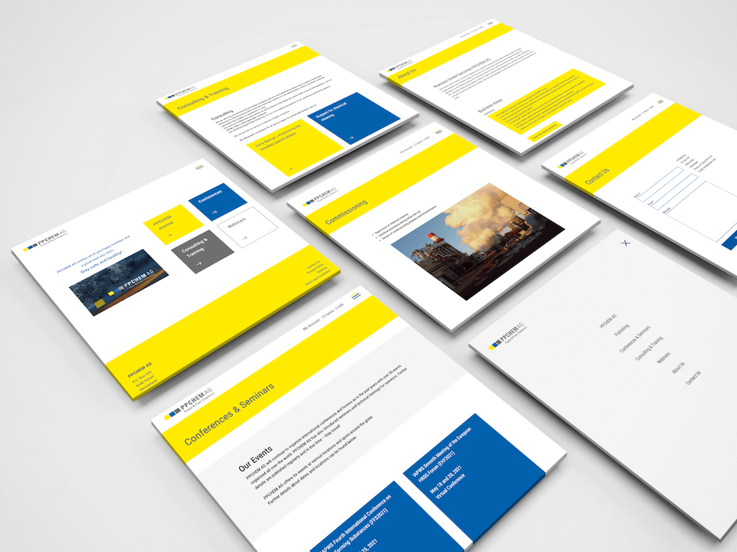 Das Webdesign wurde minimalistisch und schlicht gehalten, passend zum Gesamtauftritt von PPCHEM. Ein besonderes Augenmerk galt der gestalterischen Umsetzung ohne Bilder mit Wiederverwendung der bestehenden Farben und Formen.
